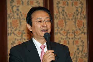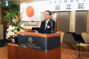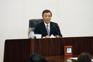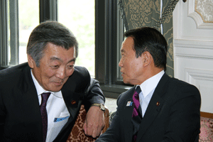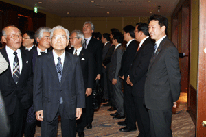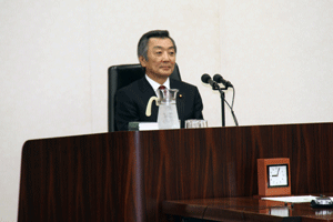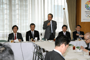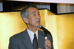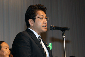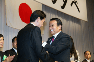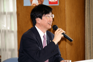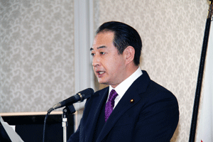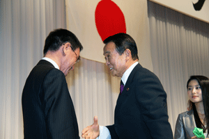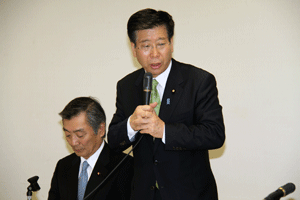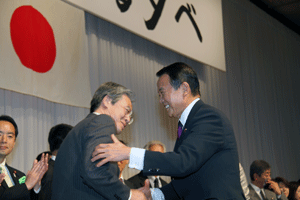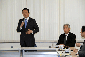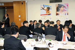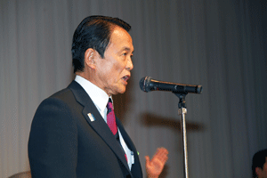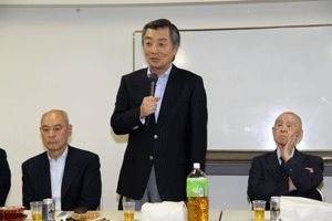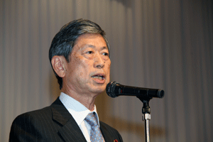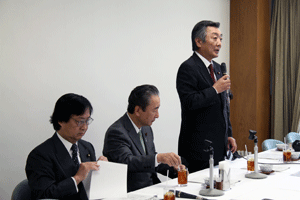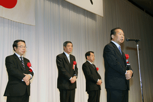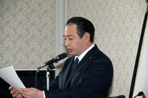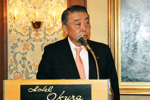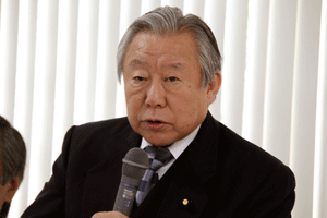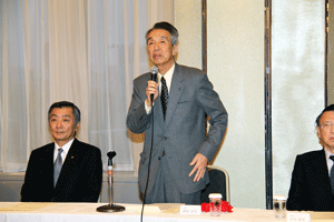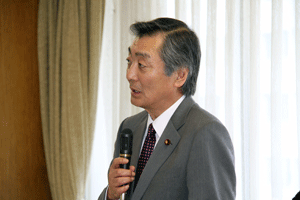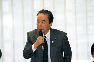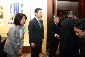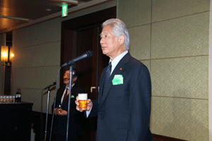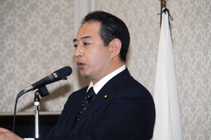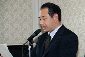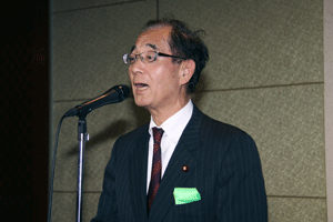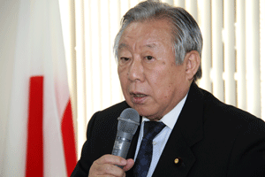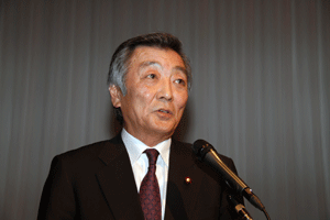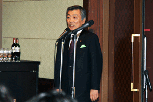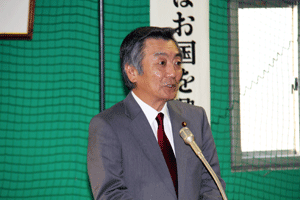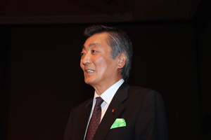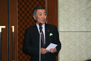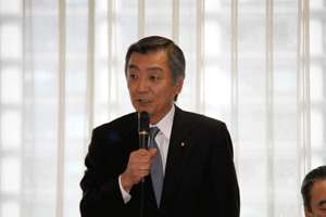 今日は残念ながら麻生太郎会長は予算委員会対応などのために出席できませんでした。副会長の鴻池祥肇参議院議員からご挨拶をいただきました。