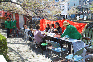 毎年恒例の第一中部地区民生委員会、児童委員協議会主催の「お花見の集い」が大岡川沿い聖母幼稚園前で催されお邪魔しました。本来なら昨日開催の予定でしたが雨天順延となり、昨日の天気が嘘のように素晴らしい天気でお集まりの方もお茶、お菓子、おしるこに笑顔が絶えない会になりました。(秘書大木報告)