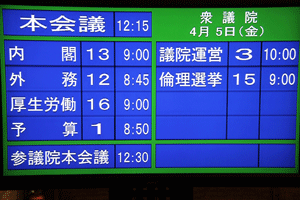 ●1200〜代議士会/院内第14控室→●1215〜本会議/本会議場
