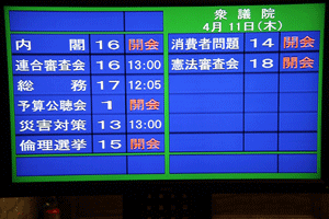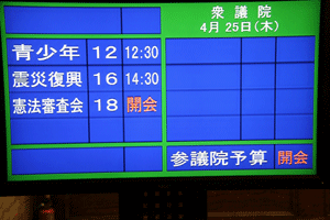 ●1245〜代議士会/院内第14控室→●1300〜本会議/衆院本会議場