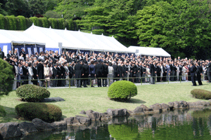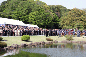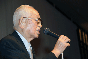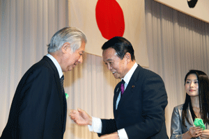 午後2時45分から、第二部にうつり「真のリーダーとは〜昭和史に学ぶ〜」という演題で、講師の橋本五郎読売新聞特別編集員から記念講演が行われました。午後3時10分から、陸上自衛隊第一音楽隊により、第三部記念演奏が行われました。なお、祝日法では国民の祝日「昭和の日」については「昭和の時代を顧み、国の将来に思いをいたす」と規定されています。
