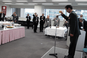 よこはま市民共同オフィス開所披露の会が関内駅前のセルテのオフィス事務所で開催されました。共同オフィスには「紙芝居文化推進協議会」「がん患者支援プロジェクト」「横浜発明振興会」「神奈川県経営管理センター」「神奈川県環境学習リーダー会」「横浜移動サービス協議会」の6つの団体が入居してオフィスシェアをしています。6団体を代表して岡村道夫横浜移動サービス協議会理事長から「住吉町洋服会館から移転しこのセルテの新拠点となりましたが、やっとバリアフリーのオフィスとなり喜ばしい限りです。各団体のコラボを深めて、このスペースを有効に使って活動を広めていただきたいと思います」と挨拶がなされました。(秘書古正報告)