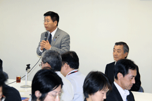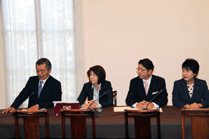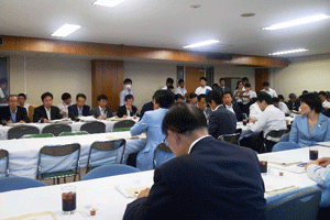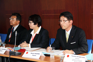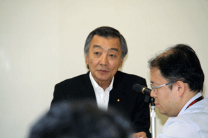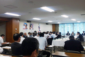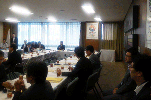 神奈川県税理士政治連盟と推薦国会議員秘書との懇談会が税理士会館で開催されました。平成26年度税政改正に関する要望について説明がなされました。その中で重要要望として@消費税のあり方について、A復興特別所得税の見直し、B土地建物の譲渡損益は他の所得との損益通算を認めること、C法人税の損金参入規定等についての見直しの重要4項目が要望されました。(秘書古正報告)