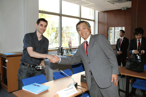 ナスール・トゥネクティGENOPOLE所長補佐、レイモンド・ザキアI-Stem所長、マーク・ぺシャンスキーI-Stem科学部長ほか