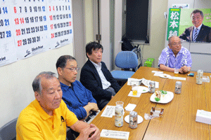 純心会の定例会が地元事務所で開かれました。松本事務所からは瓦版9月号、欧州視察、新しいポスターの事などを報告しました。皆さんのご都合で忘年会を11月26日に開催する事が決まりました。(秘書古正報告)