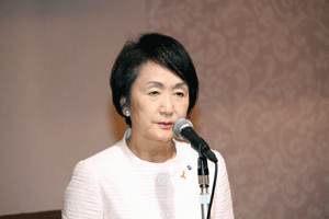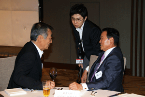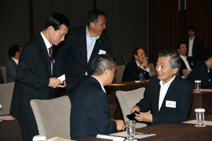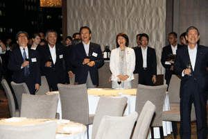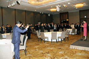 会場を移し、懇親会を開催されました。丹羽秀樹文部科学大臣政務官の司会で進行されました。大島理森番町政策研究所会長、高村正彦自由民主党副総裁からの挨拶に続き、麻生太郎副総理・財務大臣の来賓挨拶の後、山東昭子番町政策研究所副会長の乾杯のご発声で、懇親に入りました。