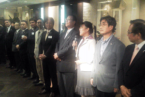 日本税理士政治連盟第47回定期大会後懇親会(山川巽会長)が午後4時20分からホテルオ-クラ東京別館B2Fアスコットホ-ルで開催されました。これからの税制改正に向けて、平成26年度改正要望項目をまとめたとのことで、改正要望は次の12項目です。【税理士の業務に関する規定】1)電子申告等における税理士業務の明確化:電子申告等のコンピューターを用いた業務についても、法第2条第1項の税理士業務に含まれることを明確にする、2)補助税理士制度のあり方:補助税理士の呼称を所属税理士と変更したうえで、他の税理士等の事務所に所属しながら他人の求めに応じて税理士業務を受任できることとする、3)事務所設置の適正化:税理士事務所について日税連の登録事務の適正な運営を確保する等の観点から、その登録事務(変更登録を含む)に関して一定の権限を付与する、4)報酬のある公職に就いた場合の税理士業務の停止規定の見直し:一定の例外を除いて、税理士が報酬のある公職に就いた場合でも、その公職に兼業禁止規定がない場合は、税理士業務を禁止する必要がないようにする。【税理士の資格取得に関する規定】5)税理士の資格:指名が各々異なる専門職業に対する資格付与は、各々の専門性を問う試験を通じて行うことが原則である。このため、現在、税理士の資格が自動付与となっている弁護士や公認会計士について、関係者等の意見も聴きながら、例えば、弁護士は会計学に属する科目に、公認会計士は税法に属する科目に合格することを原則とするなど、税務に関する専門性を問う能力担保措置を講じる、6)受験資格要件の緩和:税理士試験の受験資格要件のうち職歴要件を現行の「3年以上」から「2年以上」に短縮する。【税理士の信頼性の確保に関する規定】7)研修受講の義務化、8)経済的弱者に対する税務支援への従事義務化、9)税理士証票の定期的交換、10)税理士が行う租税教育への取組みの規定整備、11)会費滞納者に対する処分の強化、12)通知弁護士等の公示等。