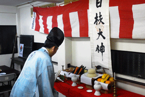 富岡八幡宮秋季大祭式(湯立て神楽)が神社社殿で斎行されました。奉賛会、祇園舟保存会、氏子、各関係者が大祭式に出席され佐野主水宮司による神楽神事が執り行われ富岡地区の安泰が祈願されました。式典では代議士代理として皆さんと共に玉串を奉納いたしました。神事終了後、佐野宮司より秋季大祭式が無事に執り行われた報告がなされ、社殿階下の控室で直会が催されました。(秘書森報告)