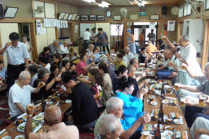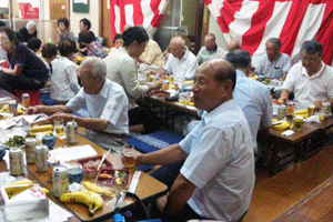 末吉3・4丁目町内会日枝神社例大祭鉢洗い懇親会が末吉町のホテルマイステイズ1階で開催されお招きいただきました。槇泰敏町内会長より連合渡御を台風18号の影響で中止して子供神輿渡御をした報告、そして「2年後の本祭りも皆で力を合わせて頑張りましょう」とご挨拶されました。菊地正綱祭礼委員長より協力のお礼がありました。私は松本純代理として紹介していただきました。(秘書大木報告)