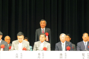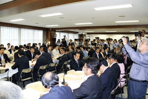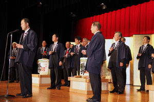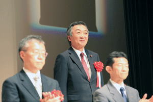 全国製麺協同組合連合会法人化50周年記念祝賀会―第54回全国製麺業者大会ーが午後5時30分から帝国ホテル3階富士の間で開催されました。前場敏男会長の主催者代表挨拶の後、来賓として伊吹文明衆議院議長、石破茂自由民主党幹事長、衆議院厚生労働委員長の私、平井卓也衆議院内閣委員長、義家弘介文部科学大臣政務官から来賓挨拶があり、鏡開きとなりました。なお午後2時からの第1部では、北原照久ブリキのおもちゃ博物館館長の記念講演が行われたとのことでした。そして引き続き式典では功績のあった関係の皆様に感謝状が贈られたそうです。