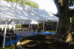 平成25年度石川町3丁目西部音楽祭が町内会館前仲通りで開催され、オープニングセレモニーに出席しました。石川町3丁目西部町内会・有波基会長より開会の挨拶が行われ、地元の県市議に続いて音楽祭開催への祝辞を述べました。仲通りに設営された各テントでは色々な飲食の販売が行われ、有波会長のお母様、良枝さんも婦人部の皆さんと忙しく動き回られていました。音楽祭は「石川町濡れ地蔵供養祭」の一環として行われ、70〜80年代のソウルミュージックが演奏披露されます。(秘書森報告)