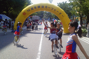 10周年記念横浜カーフリーデー2013&モビリティウィーク開会式が横浜公園の水の広場で開催されました。大内えりかNPO法人横浜カーフリーデー実行委員会理事長より「横浜カーフリーデーは次世代の人々のためにも地球環境のこと、都市に賑わいを創り出すこと、そして都市に住んでいる私たちの安心安全を創り出すこと目指して活動しております。昨日から全国交通安全運動が始まりまして、加賀町警察のご協力で日本大通で交通安全教室も開催されます。横浜は近代文明発祥の地であり、国内外から大勢のお客様がお見えになります。そのお客様の為にも、私たちのためにも誇れる国際観光都市、国際環境都市となることに我々は貢献していきたいと思います」との挨拶がなされました。横浜公園、日本大通り、象の鼻公園で様々なエコツーリズムのイベントが催されました。(秘書古正報告)