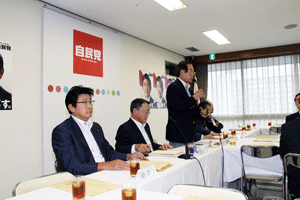 自動車議員連盟総会並びに自動車政策懇談会が午前8時から自民党本部901号室で開催されました。総会は脇雅史事務局長の司会で進行され、額賀福志郎会長の挨拶の後、引き続き自動車政策懇談会にうつりました。消費税と併課されている自動車関係諸税に関して自動車関係6団体からの税制改正要望の聴取、経済産業省宮川正製造産業局長等からの車体課税の抜本的見直しについて説明を聴取し質疑応答・意見交換に入りました。最後に細田博之幹事長からとりまとめとして、自由民主党自動車議員連盟額賀福志郎会長名の「消費増税の悪影響を緩和する車体課税の見直しを求める緊急決議」が諮られ了承されました。(秘書渡部報告)