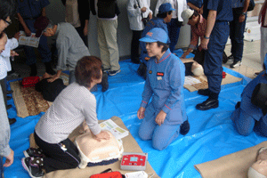 本町小学校防災訓練が本町小学校のピロティで行われました。本町小学校は大地震など大きな災害が発生した場合、地域の防災拠点となっています。中区第一北部地区と関内地区の町内会の皆さんが参加され、非番誘導、情報伝達、防災資機材取扱、炊き出し、食料配布などの訓練が行われました。(秘書古正報告)