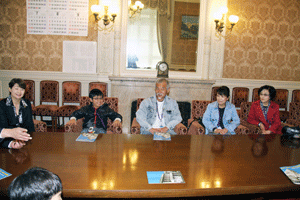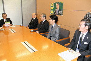 志田祥子様はじめ代議士の母校横浜市立本町小学校の4年生と2年生の各々2名を含むご一行様9名が国会見学にいらっしゃいました。衆議院内3階自由民主党総裁室で松本純代議士との懇談をして頂きました。昼食は、衆議院2階議員食堂でそれぞれに注文して頂きました。見学は、まず到着された衆議院第一議員会館の12階から国会の全景を見て頂き、ご案内を開始しました。国会見学のための特別通行証が3時間の限定のため慌ただしいご案内となりました。衆議院の中は3階の第一委員室(予算委員会等の開催される会議室)、御休所(天皇陛下が開会式におみえになられたとき等におやすみ頂くお部屋)、中央塔、2階第14控室(自民党代議士会等開催の部屋)、議長応接室、1階衆議院正面玄関内ホ−ル、国会議事堂正面での写真撮影、都道府県の木、お土産屋さんでのお土産購入、吉野屋さんでの牛重の購入、憲政記念館見学で持ち時間が終了してしまいました。その後は、千鳥ヶ淵までいき、九段会館から日本武道館周辺の満開の桜のお花見をして帰浜の予定とのことでした。(秘書渡部報告)