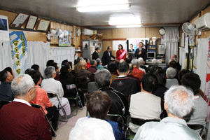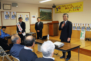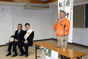 自民党横浜市会・黒川まさる候補の個人演説会が柴町内会館で開催されました。黒川まさる後援会・安斎嘉修会長のご挨拶後、地元弁士の方から黒川候補の地域に対する貢献が述べられ、松本純代議士からは黒川候補へ選挙戦必勝の激励が述べられました。(秘書森報告)