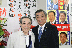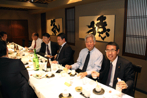 仲榮会40周年記念の会祝宴が大磯プリンスホテルで開催されました。仲榮会中丸榮子会主には松本純代議士が日本民謡歌謡舞踊協会で大変お世話になっています。祝儀曲「さんさ祝い歌」の披露に続き、中丸会主から「若き日に友人に誘われ何気なく始めた民謡が私の人生に大きな華を咲かせてくれました。40年を振り返ると、民謡ブームもあり、数々の舞台、レコーディングを通していろいろな勉強をさせていただきました。これからも仲良く楽しく和をもってをモットーに中榮会は前進して参りたいと思いますのでよろしくお願い申し上げます」との挨拶がなされました。(秘書古正報告)