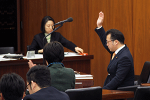 選挙制度調査会が、自民党本部702号室で開催され、福田峰之事務局長代行の司会で進行されました。逢沢一郎会長から憲法改正の国民投票の投票権年齢18歳になることに関連して、選挙権年齢の18歳への引き下げ法律案の成立が課題であり、また、投票環境の向上について論議をして頂きたいとの挨拶の後、議題の、@投票環境の向上方策等に関する研究会中間報告については、総務省選挙部長から、A選挙人名簿の登録制度の見直し案(公職選挙法改正案)については、衆議院法制局、総務省選挙部長からの説明聴取に、引き続き、質疑応答、意見交換にうつりました。なかで、新しい住所に引っ越して3カ月以内に選挙がある場合は旧住所で投票できるよう、選挙人名簿登録制度を見直す公職選挙法改正案をまとめ、野党にも共同提出を呼び掛け、今国会での成立を目指す内容の改正案を提出成立を目指すこととしました。自民、民主、公明など与野党6党は選挙権年齢を18歳以上に引き下げる公選法改正案を今国会に共同提出していて、来年夏の参院選から適用される見通しで、自公両党は選挙人登録制度の見直しも同時に実施したいとのこと。現行制度では、新住所に3カ月以上住んでいないと自治体の選挙人名簿に登録されない。18歳は進学や就職のため引っ越すケースも多く、新年度に転居する多くの若者が、来年夏の参院選で選挙権を行使できない可能性が指摘されていることから審議されました。(秘書渡部報告)