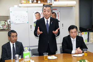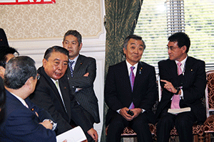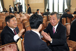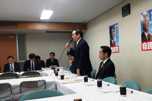 為公会例会 麻生太郎会長挨拶 国会日程の関係で2週間(当例会を)欠席した。 さて、きのうから新年度が始まった。しかし、残念ながら予算案は参議院で審議中だ。今週月曜日に暫定予算が成立したが、一刻も早く本予算が成立すべく努力を続けていかねばならない。先生方のご協力、ご尽力をお願い申し上げる。 また、その他の委員会でもそれぞれ案件を抱えていると思うので、対応をよろしくお願い申し上げる。 さて、いよいよあす(金)、41の道府会議員選挙の告示日となった。あすは与野党双方の理解で国会日程もなく、皆さん方も各候補の出陣式等に出席できる。 毎回言っているが、この統一地方選挙は、自分の選挙だと思って(取り組んでほしい)。来年の参議院選挙はもちろん、いつあるか分からない衆議院総選挙を考え、この地方選挙、県会に限らず市会、町会、町長選挙、色々あろうと思うが、積極的に取り組む。そうした姿勢がすごく大事であって、(他人の)選挙は必ず自分のためになる。 ここ1、2回の(総)選挙はその前の選挙に比べればはるかに(自民党に)風が吹いていたわけで、これは比較の問題としてそう認識して、今後、厳しい状況になった時どう対応すべきかと言えば、やはり県会議員、市会議員の選挙の応援を通じて、その人たちとの人間関係を更に築いていくことが大事だと思う。 そして、その時はその候補者とどんな地域を作るのか、自分の住んでいる街をどういう街にしたいのかというビジョンを一緒に訴えることが一番大事だということも頭に入れておいてほしい。 私も今週末だけで10カ所以上回るが、そうしてしっかり対応していただく、人の選挙を自分の選挙と思ってきっちり汗を流してもらうことを心から期待している。 |