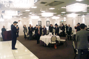 平成27年度横浜弁護士会新理事者就任披露懇親会がホテルニューグランド3Fペリー来航の間で開催されました。竹森裕子新会長より「平成27年度新会長を務めさせていただくことになりました。1年間どうぞよろしくお願いいたします。改めて弁護士と弁護士会を取り巻く状況がひしひしと身に迫ってきました。弁護士大量増員時代にあって、経済環境の厳しさは若手にとどまりません。しかしピンチをチャンスに変える好機と積極的にとらえる視点も必要だと思います。法の支配を社会の隅々に行き渡せるために弁護士がなしうる事は多々あります。弁護士の活動領域の拡充等に知恵を結集し成果が実る将来を目指したいと思います」との挨拶がなされました。(秘書古正報告)