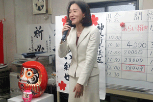 関勝則市会議員候補者の出陣式に出席しました。遅参した為、神事は終了していましたが、これから出陣式との事で事務所の前には大勢の後援者が集まっていました。最初に新井絹世県会議員候補者から激励の挨拶が述べられた後、だるまに目が入れられ、関勝則市会議員候補者から三期目に向かう力強い決意表明がありました。乾杯の後、大勢の後援者の拍手に送られ、関勝則市会議員候補者は選車で元気よく出発しましたしていきました。(秘書斎藤報告)