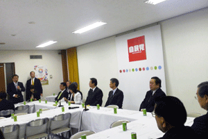 自民党金沢区連合支部の役員会が金沢文庫の「は満寿司」で開かれました。国吉一夫支部長より「今日は役員会という事で、規約では総会に準ずるとあり重要な会でありますのでよろしくお願いいたします」との挨拶がなされました。本日の議事は1.平成26年度事業報告について、2.平成26年度会計報告及び会計監査報告について、3.平成27年度事業計画についてなどが審議され全て承認されました。(秘書古正報告)